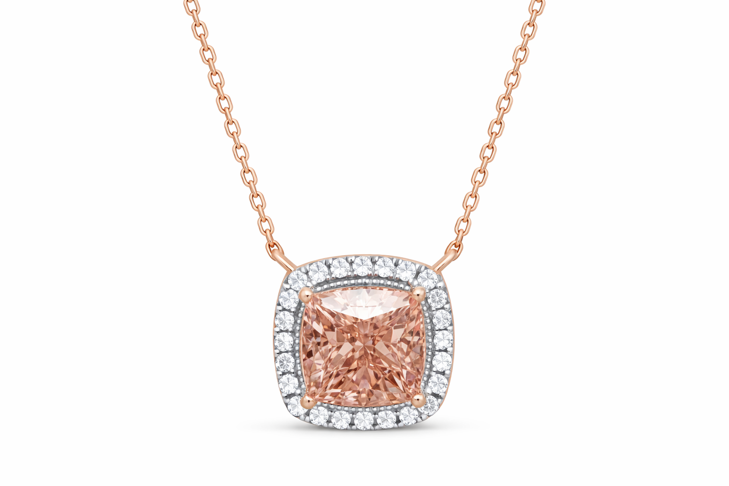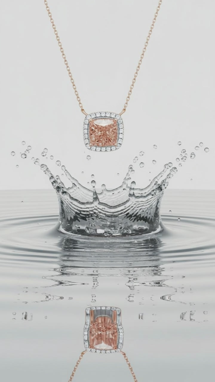 Limited Edition "Blush Princess Pendant" Lab Pink Diamond collection CUSHION cut, artfully crafted in 14Kt rose gold.